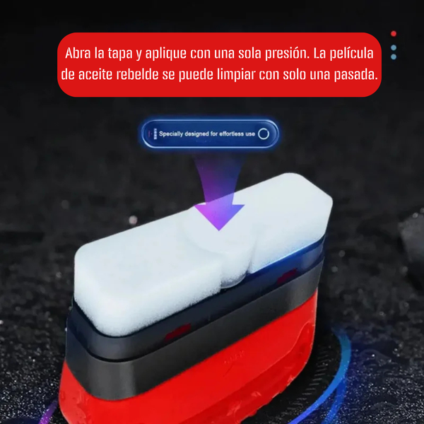 Solo desliza la superficie blanca sobre el vidrio y masajea suavemente. No requiere enjuague.